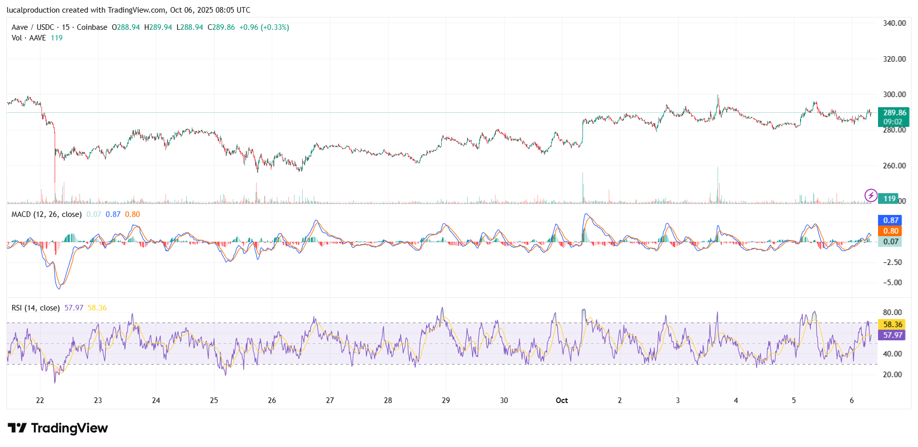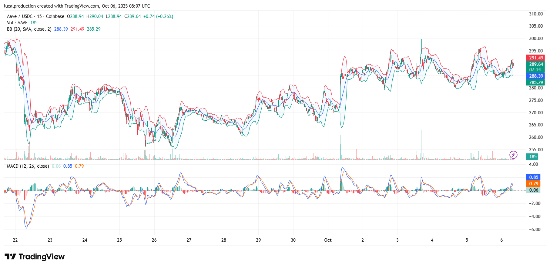 As of October 6, 2025, Aave trades near $290, reflecting steady recovery supported by a booming DeFi sector.