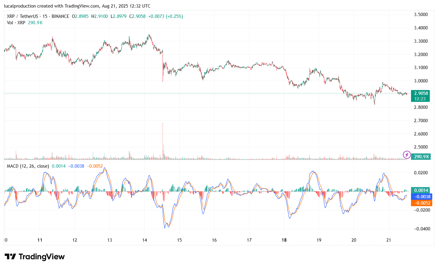 Support and Resistance Levels: Critical support zones sit at $2.90, $2.73 (early August low), and $2.65 (May peak). Resistance clusters near $3.20, $3.31 (23.6% Fibonacci retracement), and higher peaks from July-August.